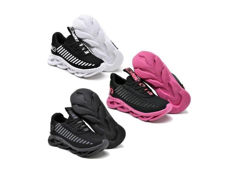 kit 3 Tênis Infantil Menina Evoltenn Sola Trança Escolar Preto e Pink,