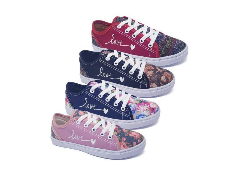 Kit 4 Prs Tênis Feminino Love Casual Confort Estampado K124 - Fabricat
