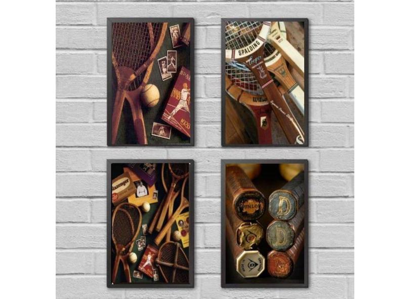 O menor preço encontrado no Brasil para Kit 4 Quadros Esporte Tênis Vintage 45X34Cm Preta atualmente é R$ 277,74.