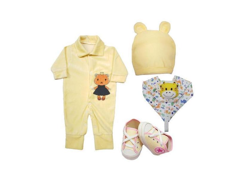 Kit Bebê 4Pçs Macacão Touca Tênis e Naninha Maternidade - Koala Baby,