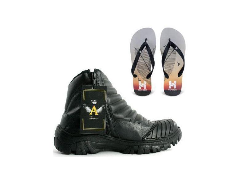 O menor preço encontrado no Brasil para Kit Bota Coturno De Couro E Chinelo Masculino Tenis Preto Para Motocic atualmente é R$ 185,00.