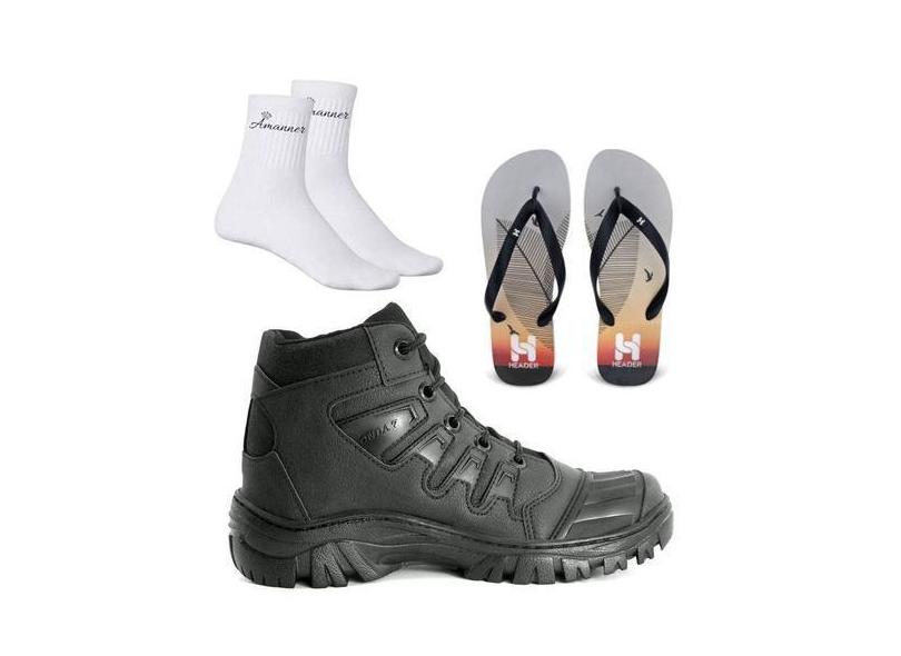 Kit Bota Coturno De Motociclistas E Chinelo Meias Casual Leve Tenis Pr