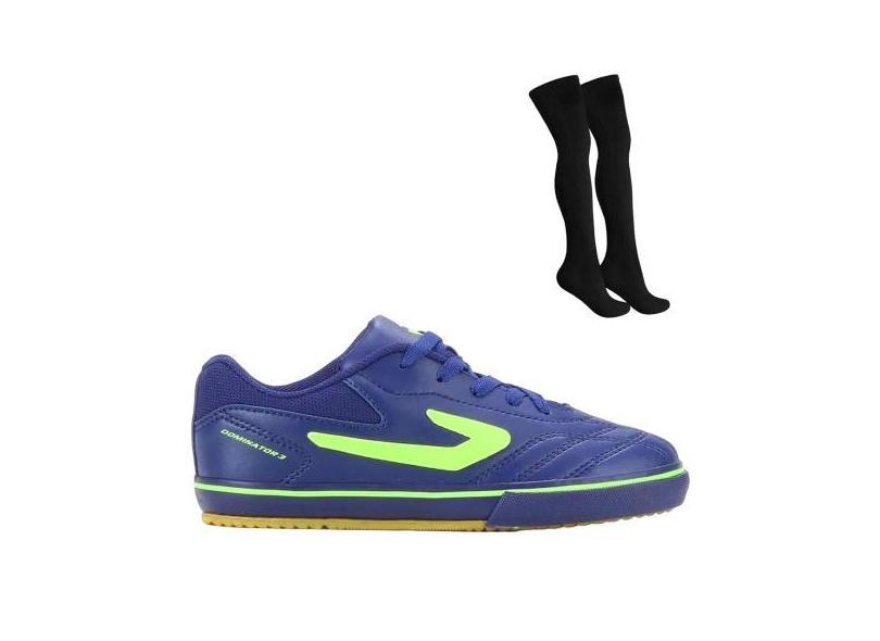 Kit Chuteira Futsal Topper Dominator 3 Infantil + Meião