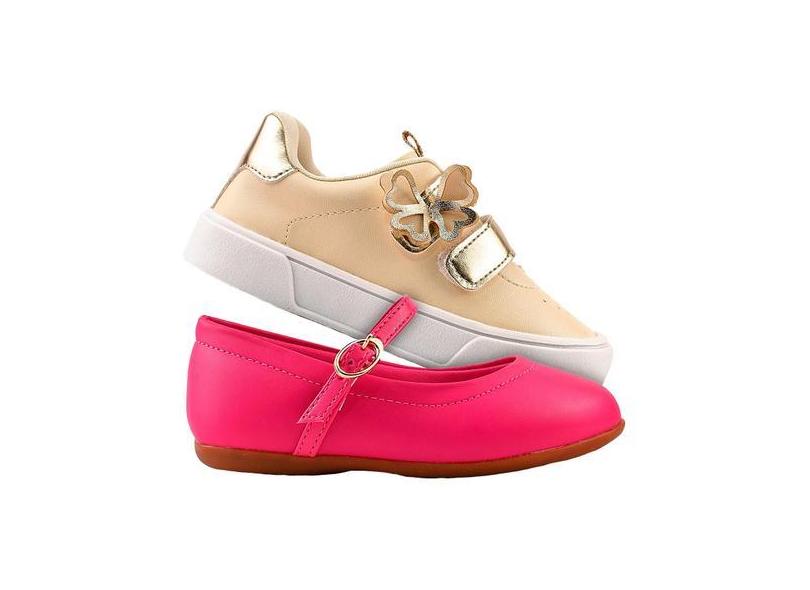 O menor preço encontrado no Brasil para Kit Com 2 Pares Tênis Bege E Sapatilha Pink Infantil Feminino - Babyki atualmente é R$ 83,61.