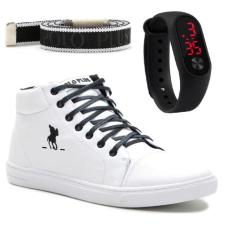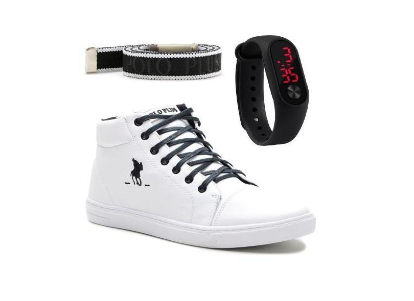 Kit Com Tênis Cano Médio Polo Plus + Relógio Digital E Um Cinto, Branc