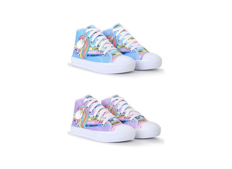 Kit Combo 2 Pares Tênis Infantil Feminino Azul E Llilás - Lukys Calçad