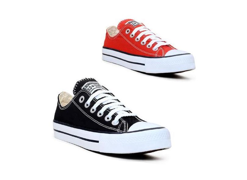Kit de 2 Pares de Tênis Unissex Kalum Authentic Star, Preto, Vermelho,