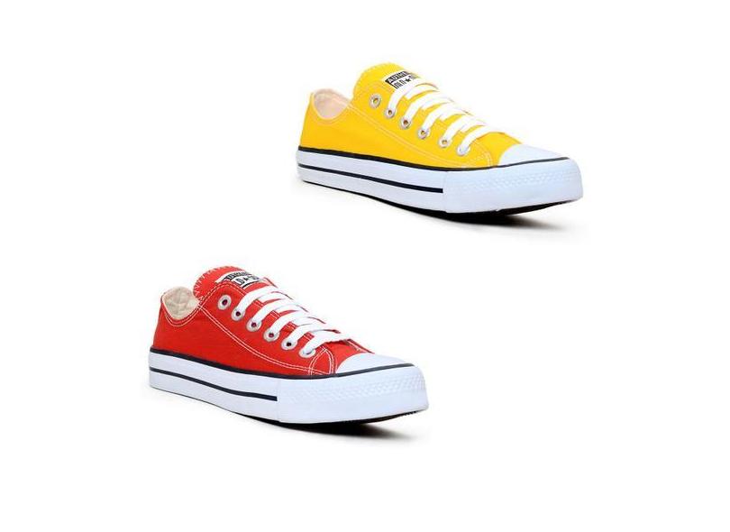 O menor preço encontrado no Brasil para Kit de 2 Pares de Tênis Unissex Kalum Authentic Star, Vermelho, Amarel atualmente é R$ 166,01.