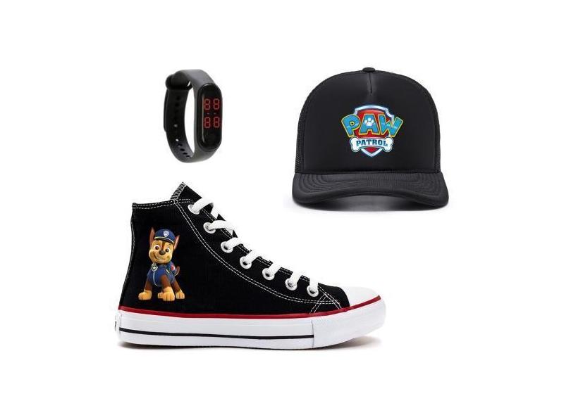 Kit De Tênis Relógio + Boné Novidade Chaise Patrulha Canina Top - Vini