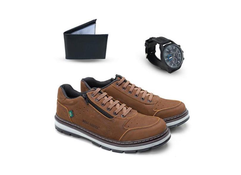 Kit Masculino Tênis Casual Couro Zíper + Carteira + Relógio - Bell Boo