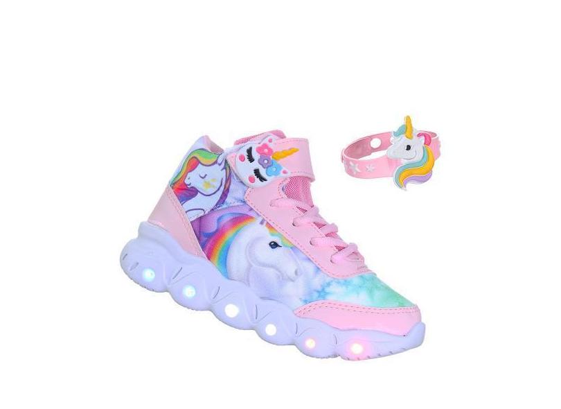 Kit Menina Tenis Unicórnio Infantil Com Luzes De Led Pisca Brilha Vem