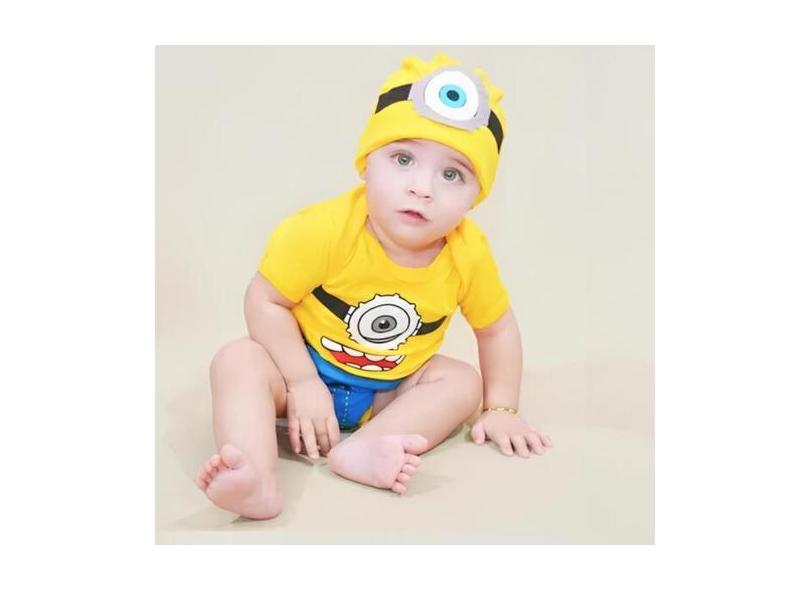 Kit Roupa Bebê Body Mesversario Minions C/ Tênis e Touca - Linha Baby,