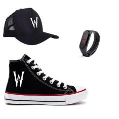 O menor preço encontrado no Brasil para Kit Tênis Boné Relógio Da Wandinha Série Família Addams Adulto Infanti atualmente é R$ 157,08.