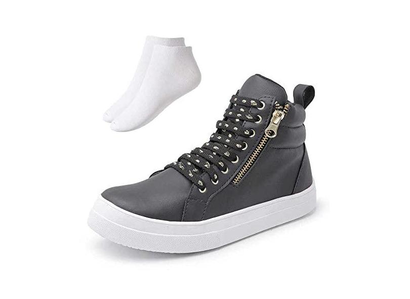 Kit Tenis Botinha Cano Alto Feminino Com Cadarço Zíper + Meia Soquete