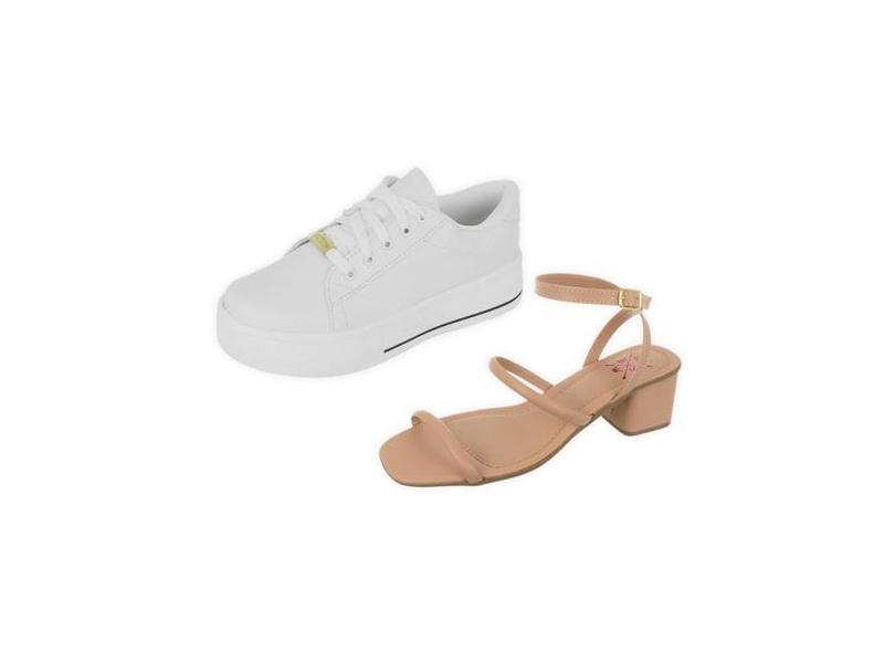 Kit Tênis Casual Branco + Sandália Salto Bloco Baixo Bellinda Shoes, N