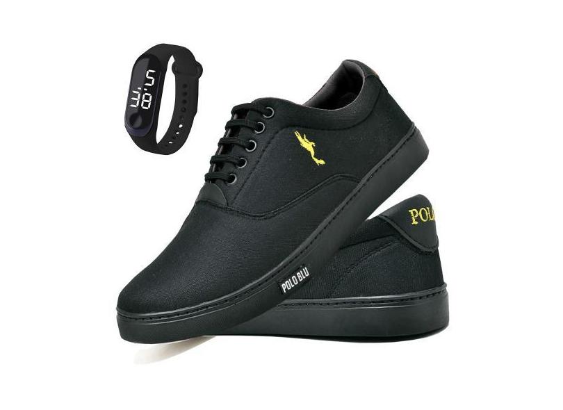 Kit Tênis Casual Masculino Lona + Relógio Digital - Polo Blu, Preto, 4
