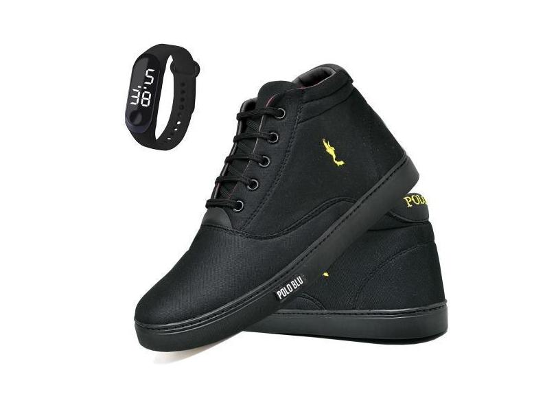 Kit Tênis Casual Masculino + Relógio Digital Polo Blu Dia a Dia, Preto