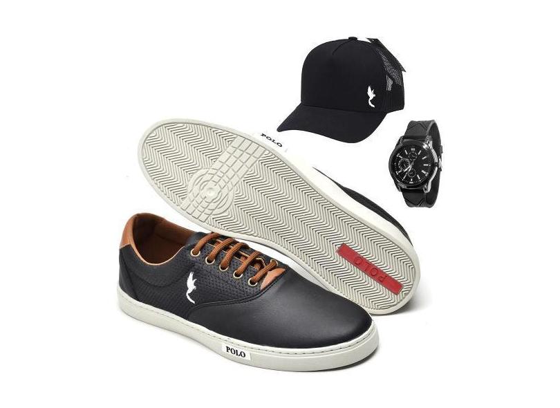 Kit Tênis Casual Masculino Relógio e Boné Dia a Dia Conforto - Polo Bl