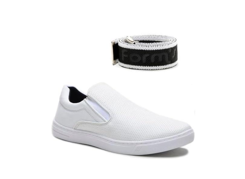 O menor preço encontrado no Brasil para Kit Tênis Casual Masculino Slip On Elástico Conforto + Cinto Branco atualmente é R$ 144,90.