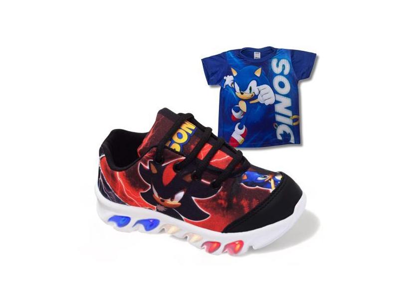 Kit Tênis De Led Infantil Menino Masculino Sonic Shadow+ Camisa - Kids