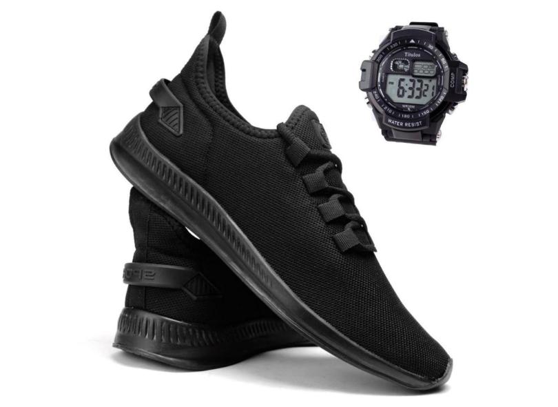 Kit Tênis Esportivo Masculino Academia Musculação Corrida Caminhada Casual Leve Macio + Relógio-Masculino