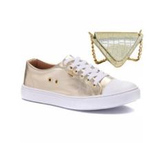 O menor preço encontrado no Brasil para Kit Tênis Feminino e Bolsa Metalizada Mini Triangulo Ombro Balada Festa Réveillon Prateado-Feminino atualmente é R$ 149,90.