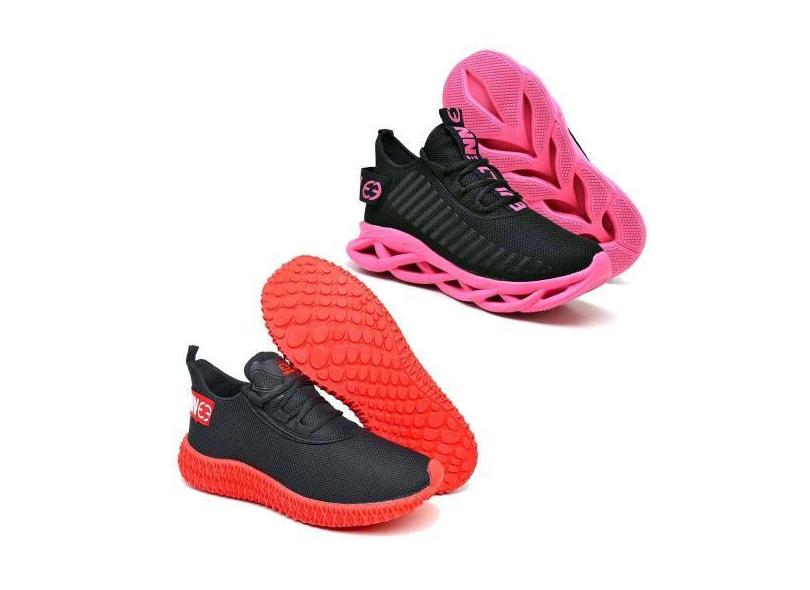 Kit Tênis Feminino Esportivo Evoltenn 2 Pares Confotavel Preto/Pink