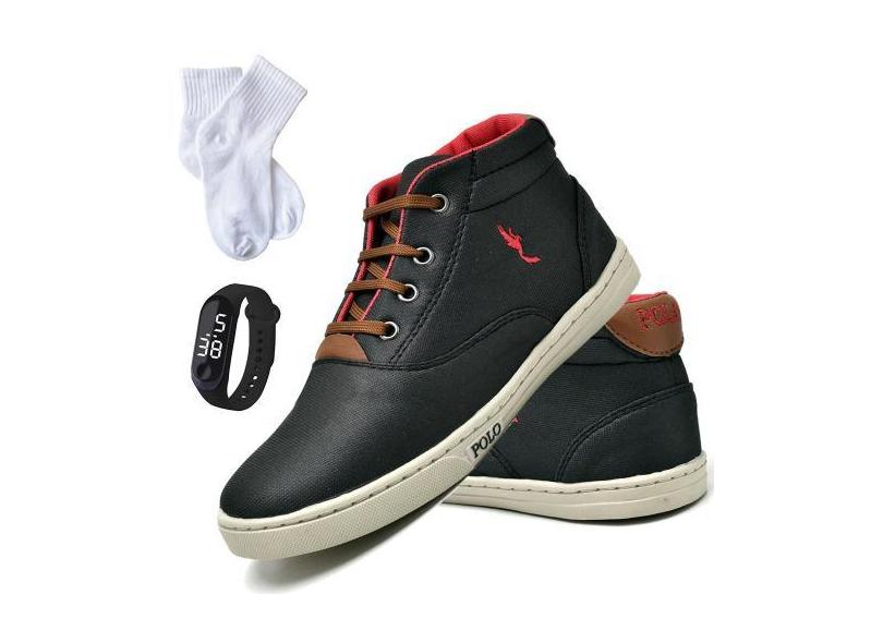 Kit Tênis Infantil Masculino Cano Médio + Relógio + Meia - Polo Blu, P