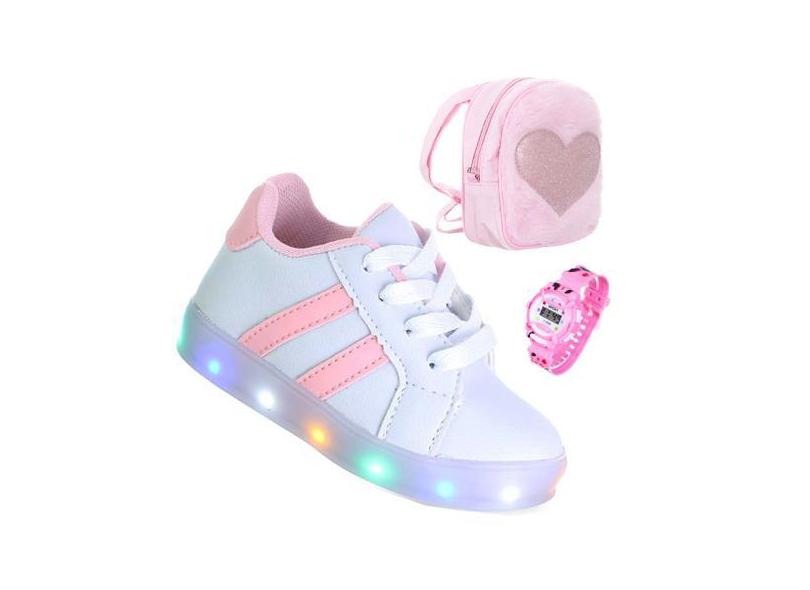 Kit Tenis Infantil Menina Luzinha Brilhante de Criança Com Mochila + R