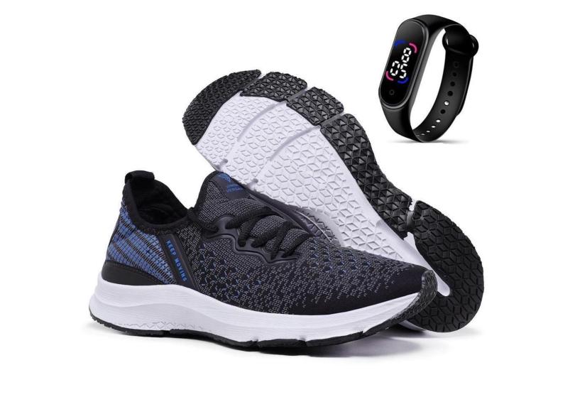 Kit Tênis Keep Moving Unissex Para Treino Academia e Caminhada + Relógio Digital Em Led-Unissex