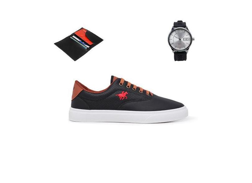 O menor preço encontrado no Brasil para Kit Tênis Masculino Polo Legítimo + Relógio De Pulso + Carteira - Simo atualmente é R$ 119,90.