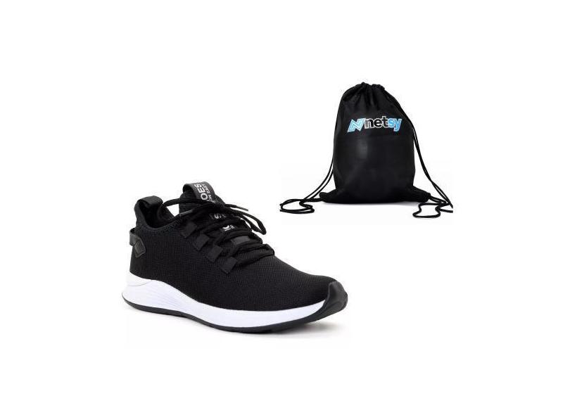 Kit Tênis Masculino Preto Esportivo Casual Leve Estilo + Mochila Bolsa