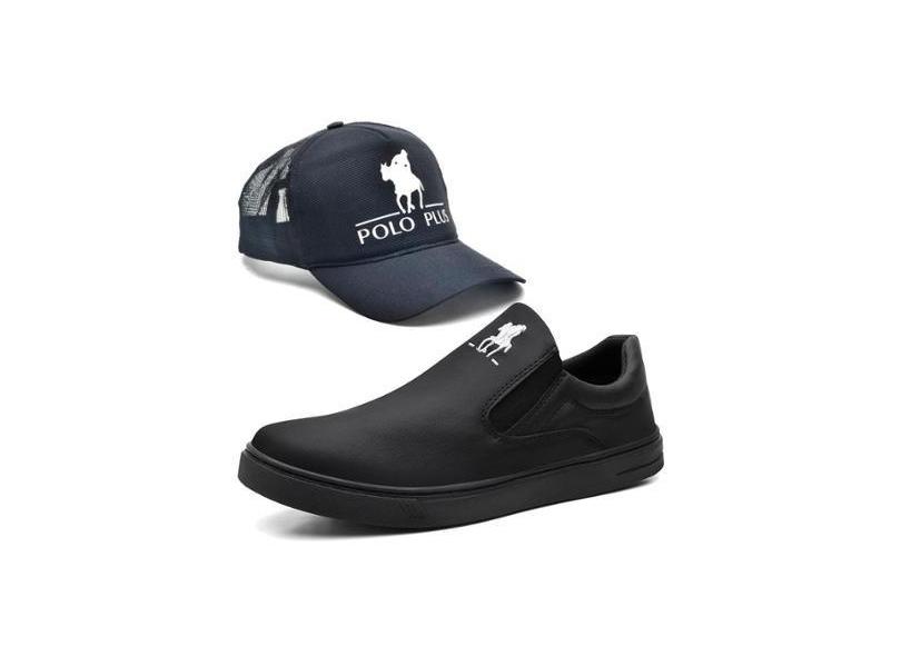 Kit Tênis Slip On Basico Menino com Elástico Lateral Sola Borracha e Boné-Masculino