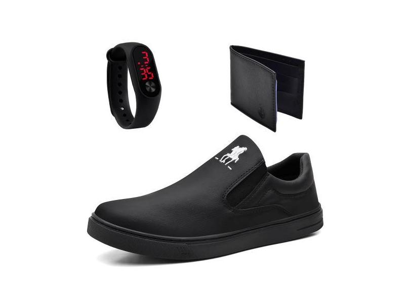 O menor preço encontrado no Brasil para Kit Tênis Slip On Hfas Shoes Elástico Lateral Sola Reta com Carteira e atualmente é R$ 153,36.
