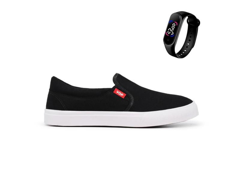 O menor preço encontrado no Brasil para Kit Tênis Slip On Voe Palmilha Com Bolha em Gel + Relógio Digital Touch-Unissex atualmente é R$ 85,41.