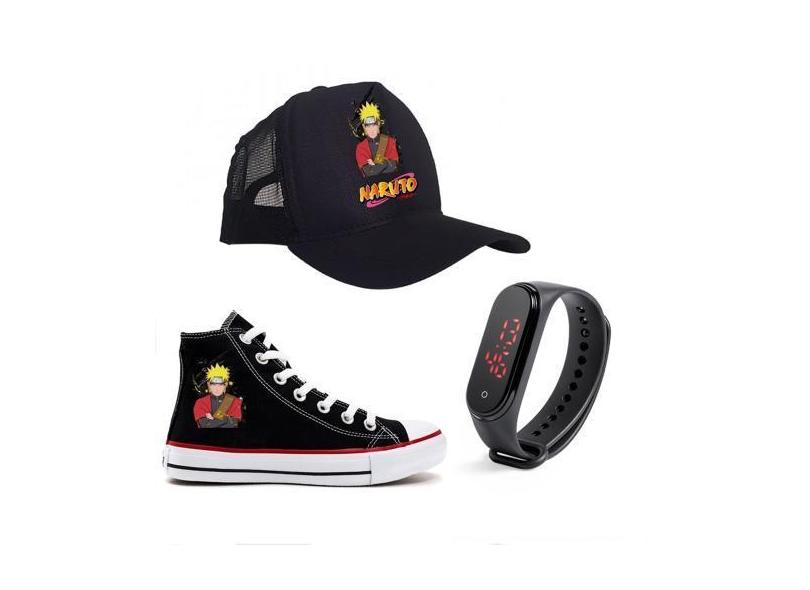 Kit Tênis Star Naruto Personagem +Boné+ Relógio Unissex Adulto Infanti