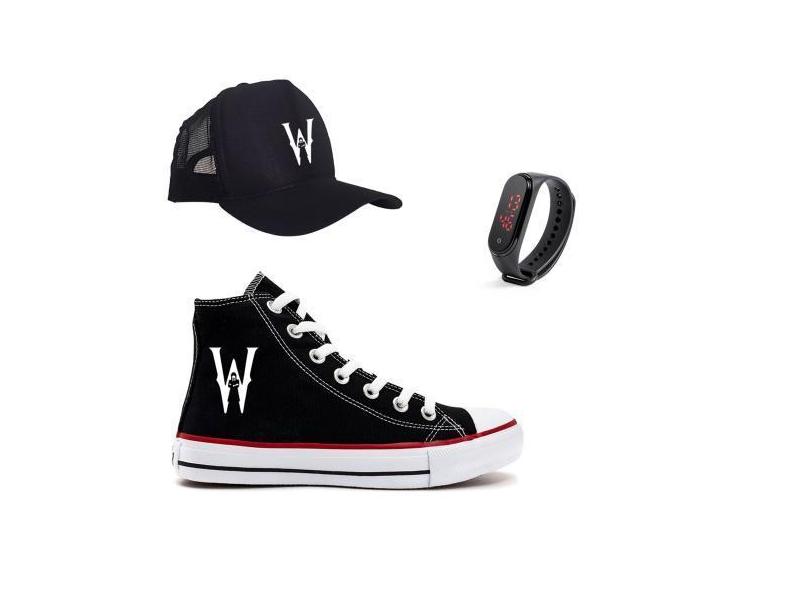 O menor preço encontrado no Brasil para Kit Wandinha Addams Tênis Boné E Relógio Meninos E Meninas - Vini Stor atualmente é R$ 169,90.