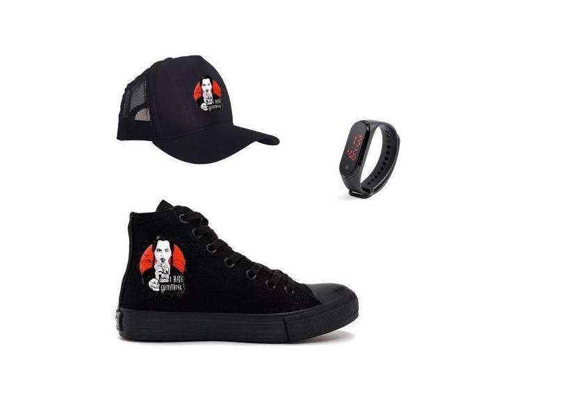 O menor preço encontrado no Brasil para Kit Wandinha Tênis Relógio + Boné Cano Alto Star Moda Jovem Adulto E I atualmente é R$ 161,41.
