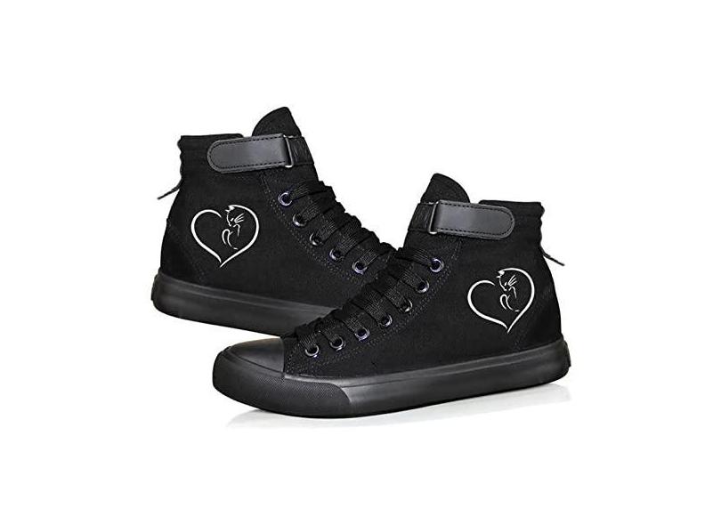 KPOP Tênis feminino com estampa de gato, presente para meninas adolescentes, tênis, lona, fofo, estampa de gato, unissex, cano alto