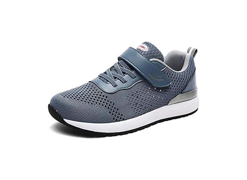 LEADER SHOW Tênis masculino casual de segurança para idosos, leve, confortável, com alça, Azul oco, 39