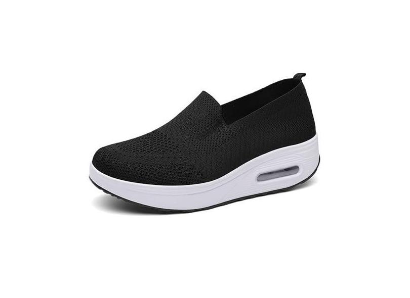 Legou Sapatos femininos casuais de malha respirável e grossa para aumentar a altura, Preto, 37
