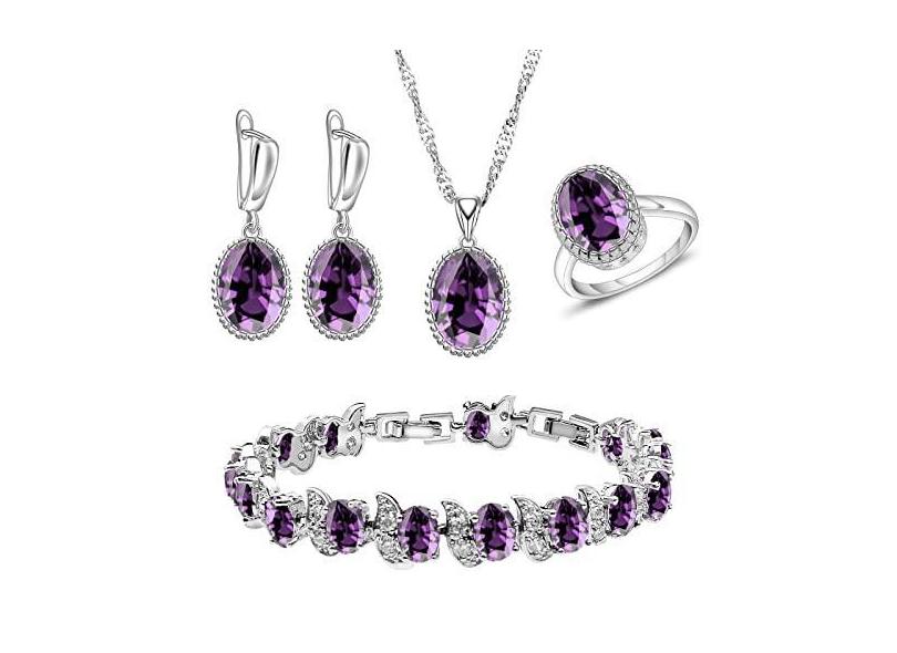 LMXXVJ Conjunto de joias femininas CZ com pedras preciosas, brincos, colar, pulseira de tênis, aniversário de noiva, festa de formatura, presente de joias de Natal, tom prateado, Cobre, Zircônia