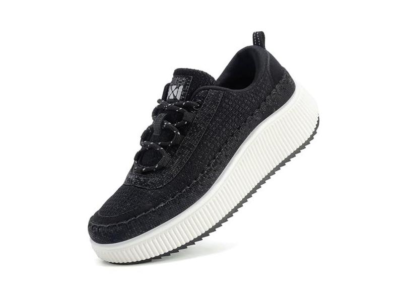 MAIZUN Tênis de plataforma feminino, com cadarço, confortável, grosso, casual, moderno, tênis de caminhada, Preto, 36