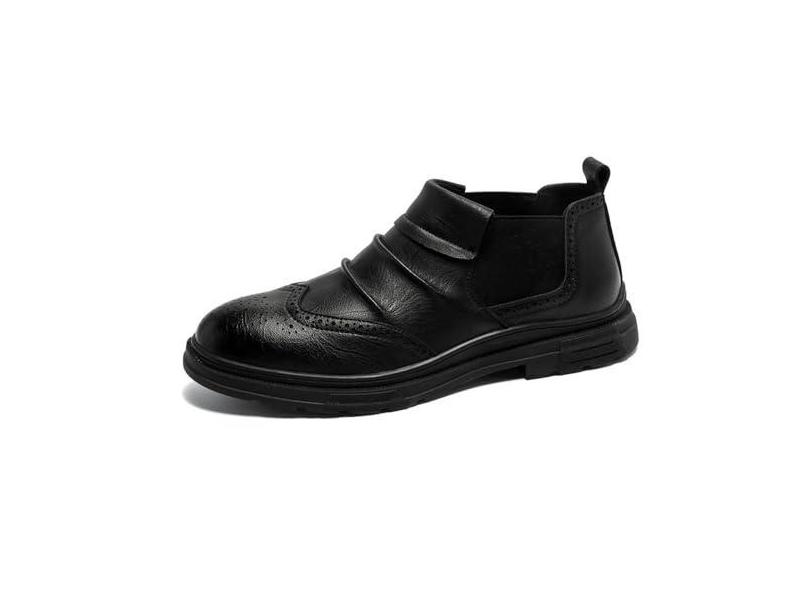 MANLADUO Tênis masculino de couro Brogue casual retrô de cano baixo - britânico Brogue masculino, Preto, 38