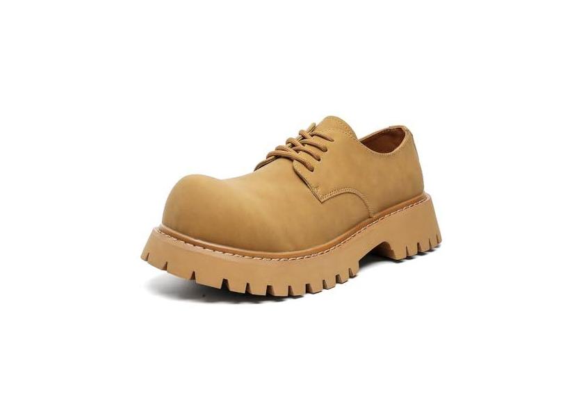 MANLADUO Tênis masculino grosso de couro com bico redondo – Tênis fashion unissex de cano baixo estilo inglês com sola grossa, Camelo, 45