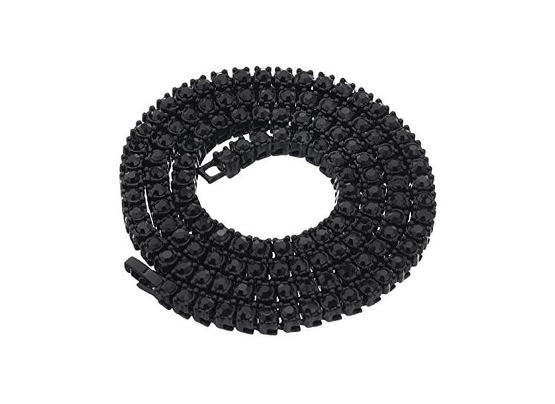 metaltree98 Colar de corrente de pedra de tênis banhado a preto 40,6 cm / 45,7 cm / 50,8 cm / 56 cm / 61 cm, Latão, Zircônia cúbica