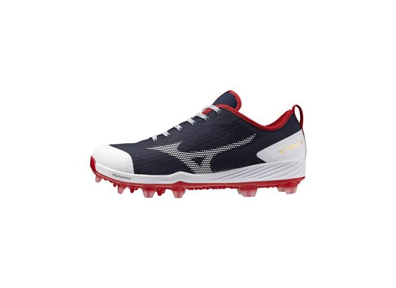 Mizuno Chuteira de beisebol masculina Dominant 4 Low TPU moldada, Azul-marinho/vermelho, 38