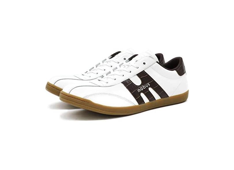 MOBUS(モーブス) Tênis de couro unissex New Munster, Branco/Dk. Marrom Croco, 39 BR