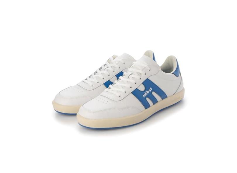 MOBUS(モーブス) Tênis masculino casual de couro Klemens, Branco/azul safira, 38