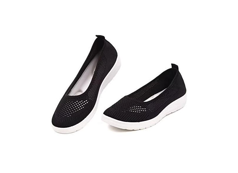MUSSHOE Tênis feminino de caminhada respirável de malha sem cadarço confortável e leve, Preto, branco, 36